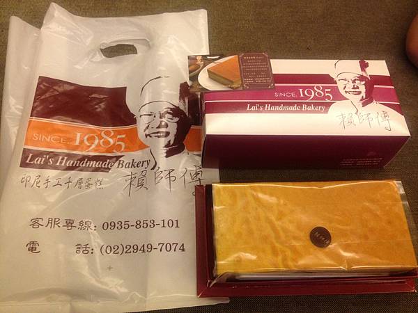 網路上有好多人推薦賴師傅的千層蛋糕,但因位於永和有點遠,一直沒機會去,剛好參加媽媽教室在中和,所以就打電話預定,上完媽媽教室,就順便去拿,這是一家很特別的店,不是店家,是位於一個黃昏市場的公寓4F,找了一會才找到