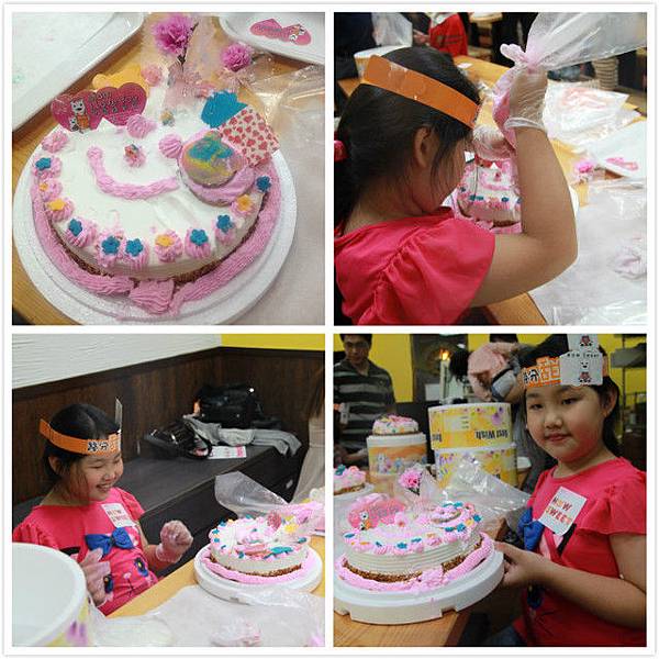終於可以做蛋糕了,有各種大小的壓花模及各種顏色的巧克力,必須戴手套才能做,DIY教室算蠻大的,一場滿20人預約即可開班,一般杯子蛋糕每人$250一個小朋友一個大人陪,我們這個$699可讓2大人2小孩一起做