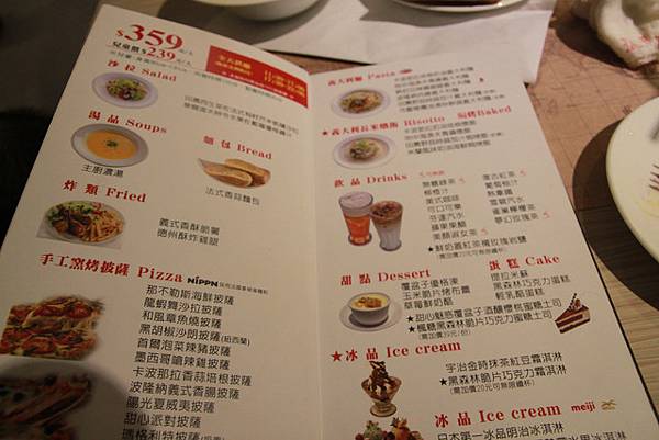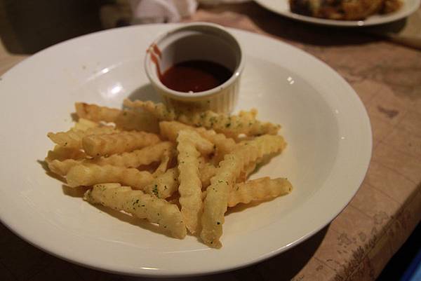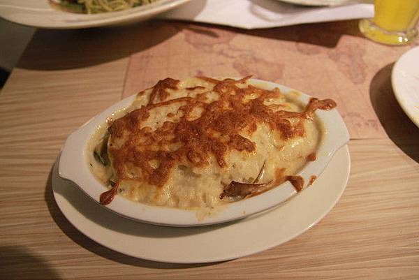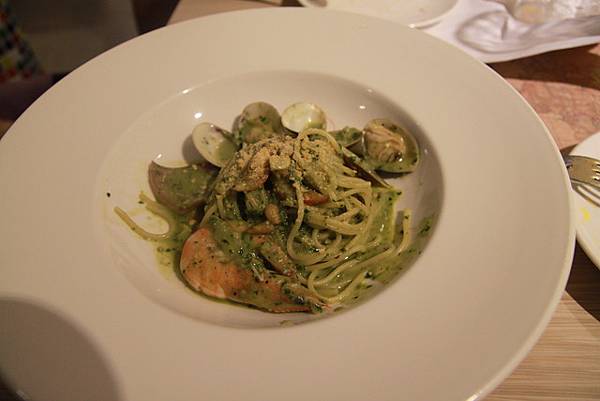 點了三道主餐,雞肉義大利麵,戴先生和我吃了都覺得雞肉不新鮮臭臭的,青醬義大利麵還可以,海鮮焗飯算是味道比較佳的