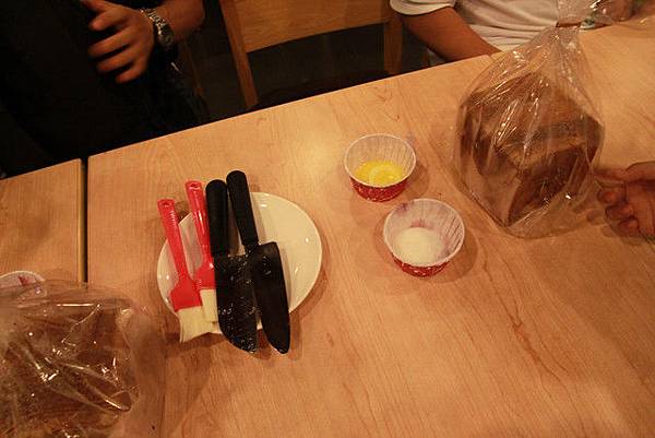 主要材料土司麵包巧克力口味、刀子、刷子、奶油、白糖