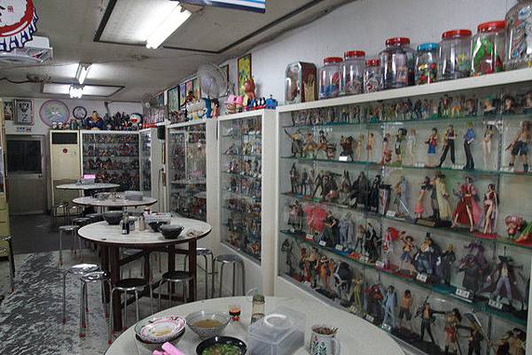 吃完啦!那一票學生也走啦!可以好好的仔細觀賞裡面的公仔,還有很多黑膠唱片,裡面的收藏真的好多,勾起六年級生好多的回憶,來這家吃米粉好不好吃已經不是重點,可以看到這麼多的收藏品也值得了~