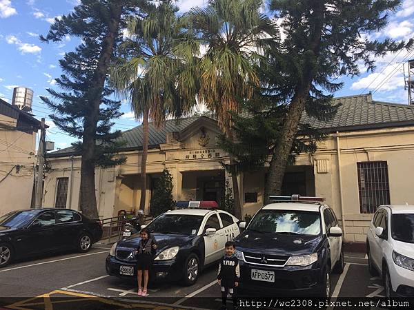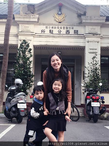 第一次到關西來露營,離台北算蠻近,今天特地請個半天假打算夜衝,就先到關西的一些景點晃晃,第一個景點關西分駐所,是古蹟,很漂亮,小孩只要看到警察就覺得很酷,門口還有警車,當然要拍張照