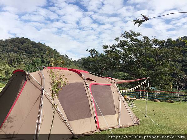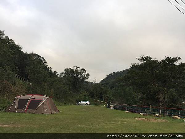 吃飽喝足,天色已經晚了,準備去營區了,營區路還好走,我們第一個到,還在門口等了一下營主來開門,營主介紹完營地,我們也選好位置,開始搭帳,這時突然起風了,我的媽呀,超大的風,帳棚都無法搭起,一直被吹走,害的娘一直慘叫好可怕呀,後來只好拉到邊邊角落去搭完再抬回要的位置,我家671第一次全部拉線,雖然驚險萬分,但今晚我們一帳包區,算是小確幸![]()