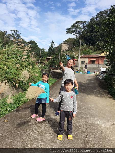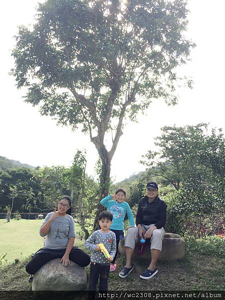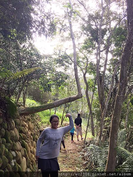 早餐吃完,聽說附近有個步道可以走走,咱們全家就一起出發去步道,這步道是新開設的,好像還沒有很多人走過,所以雜草很多,小孩有點難走,所以走到一半就回來了,據說可以走到六福村,營區也會聽到六福村的廣播音樂,但不吵