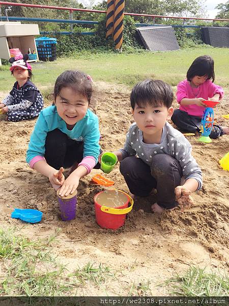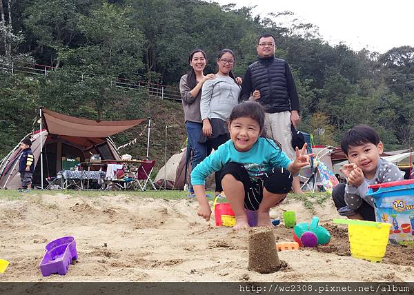 回到營區,已經有很多露友搭好了,安恩就在沙坑努力的玩