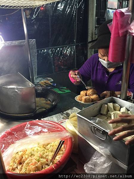 第3站:關西臭豆腐,也是人氣排隊美食,小小一家店,老闆娘很特別戴了紫色帽子紫色衣服紫色指甲油