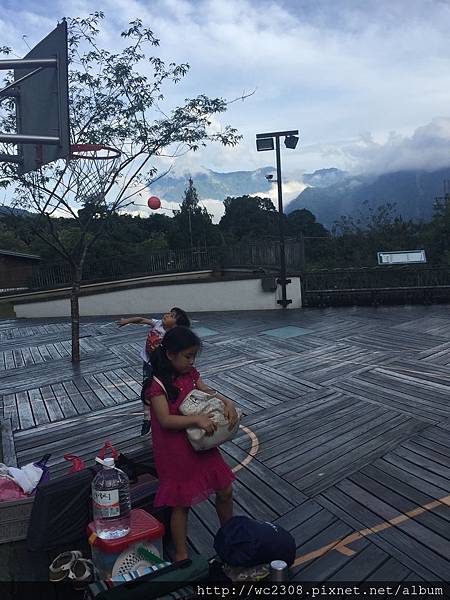 剛好有個籃球場,恩開始玩起投球遊戲