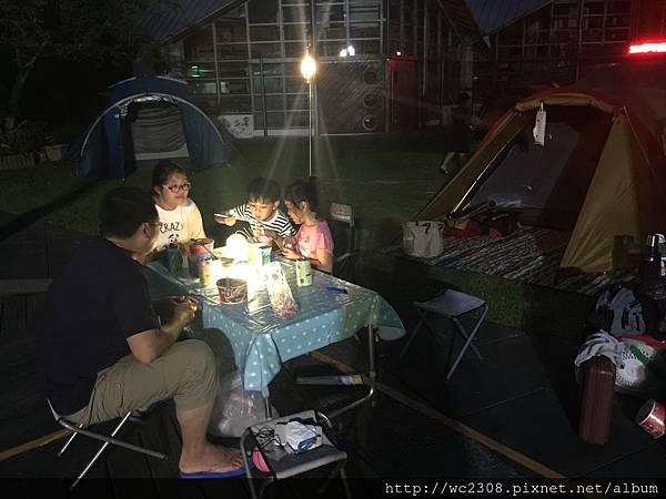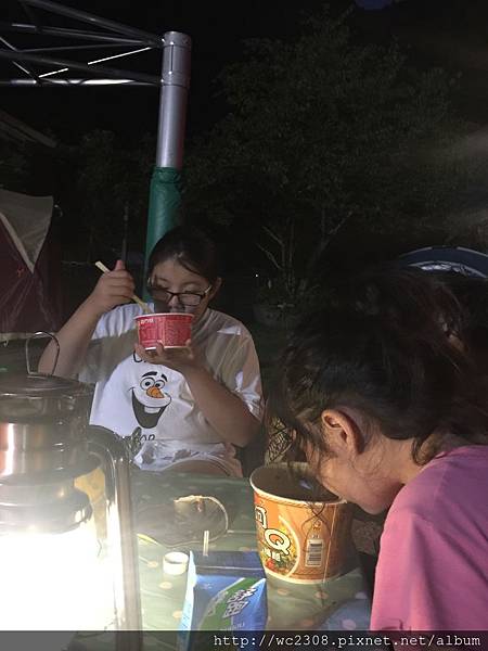來之前有爬文,某部落客說外面有賣吃的,後來發現都沒賣了,還好我家有準備泡麵,大家也開心的吃著,這裡是無電的,所以要自備電源,還好我家傢伙齊全![]()